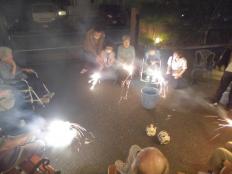 線香花火や手持ち花火、噴出し花火・・・色とりどりの炎の光はとても幻想的でした。