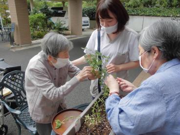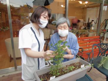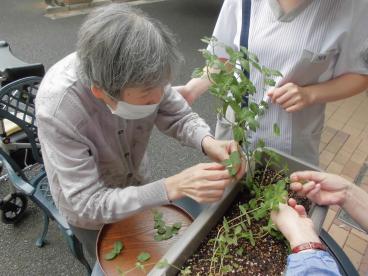 そろそろハーブ石鹸を作ろうということで、ハーブの収穫をお客様にお願いしました。