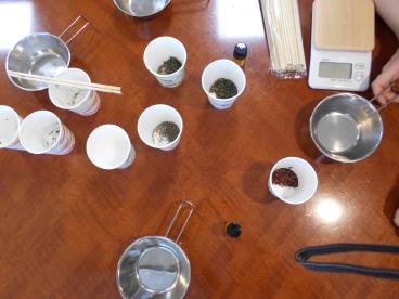 タイム、ミント、タンジー、ローズマリーの香りをあらかじめお試しで嗅いで、お好きなハーブを選んでいただきます。