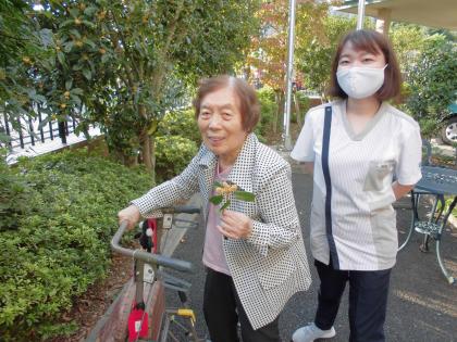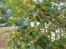 施設のフェンスに沿って植えられた金木犀が満開です。