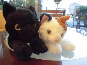 くろねこのぽこちゃん、そしてもう一匹の職員、三毛猫のみーちゃん。