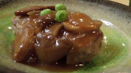 秋の味覚、きのこたっぷりのデミグラスソースのハンバーグ!