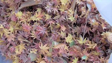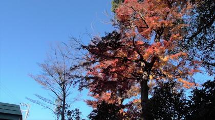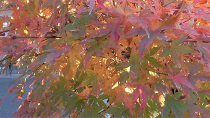 施設前の大きなもみじ、紅葉も残り僅かに。