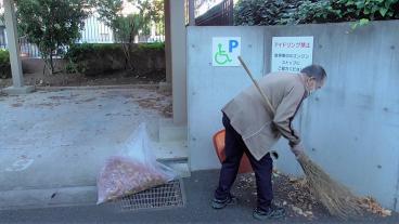 朝から環境スタッフは、施設の落ち葉掃除をしています。