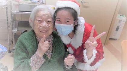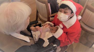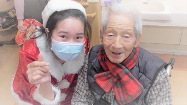 サンタクロースのマイさんからプレゼントと一緒に、「私の元気をあげます!たくさん長生きしてください」のメッセージも。