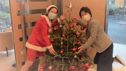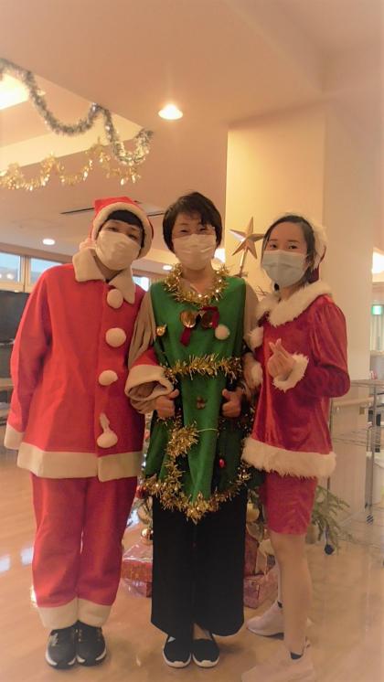 ツリーの衣装でマイさん、レーさんと記念撮影。