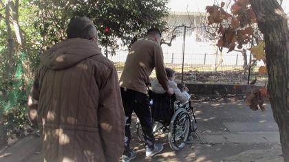 防寒対策にコートやブランケットを羽織って、あたたかな日差しのある時間に出かけます。