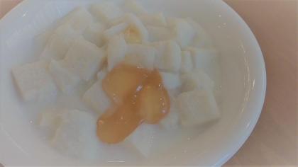 こちらはパン粥、食パンを牛乳と少量のお砂糖で煮てジャムを添えました。