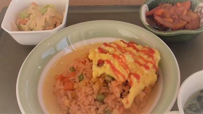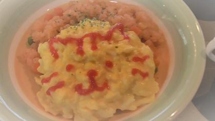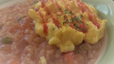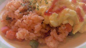 ケチャップライスにふわとろ卵のオムライス、人気メニューです。