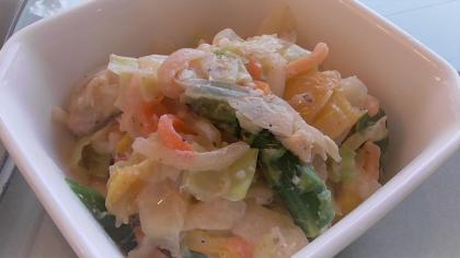 そして、シャキシャキ野菜の食感でお箸がすすむ蒸し鶏のサラダ。