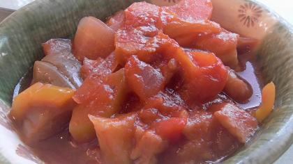 副食はたっぷり野菜のラタトゥユ、オムライスにあう濃いトマト味が決め手です。