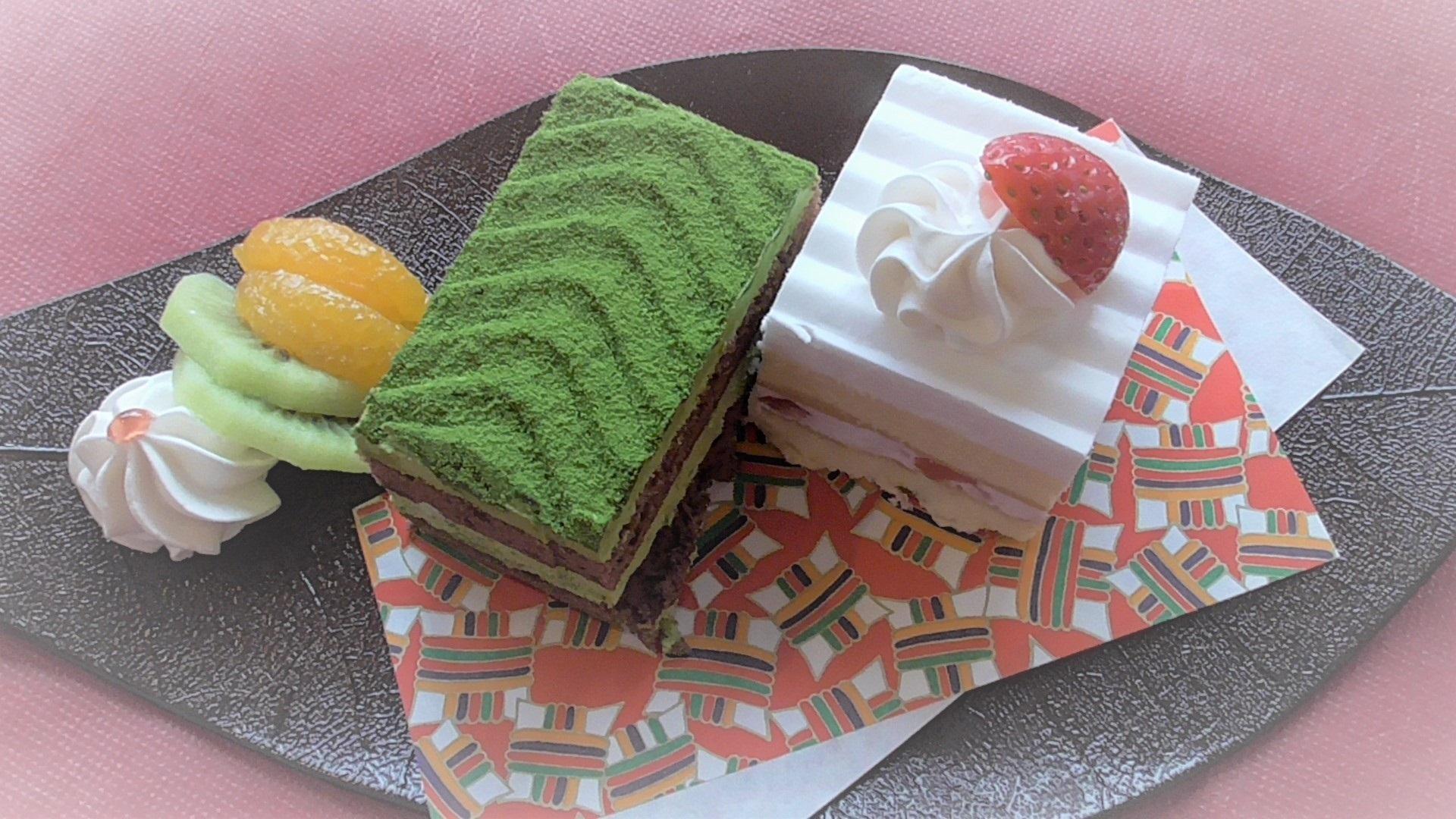 定番のショートケーキ、ほろ苦い抹茶のケーキ、どちらも大好評でした!