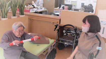 他にもレクリエーションで身体を動かしたり、機能訓練士と一緒に個別でも運動して頂いてます。
