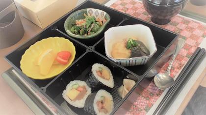 「恵方巻はもちろん手作り、かんぴょうや卵焼き、胡瓜など、ご高齢の皆様に馴染みある懐かしい海苔巻きをつくりました。厨房スタッフで、すべて海苔巻きを巻いています。