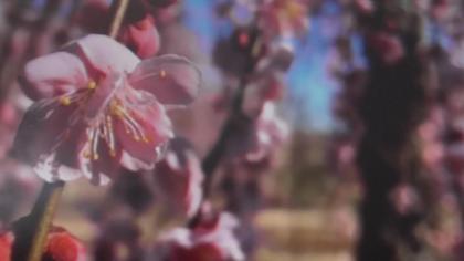 高画質の画像に映し出される梅林と、真っ白な富士山と青い空。