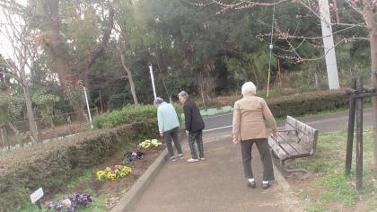 野菜苗植えの後にプチ散歩、施設前の公園まで行ってきました。