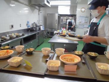 食堂に隣接している厨房から揚げたてをご提供してます!