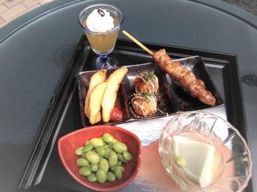 アルコールと、厨房で手作りした晩酌セットをご用意しました。