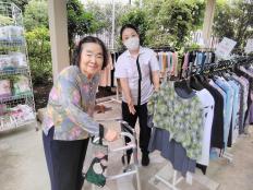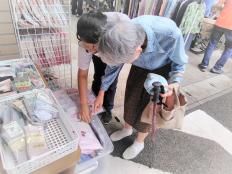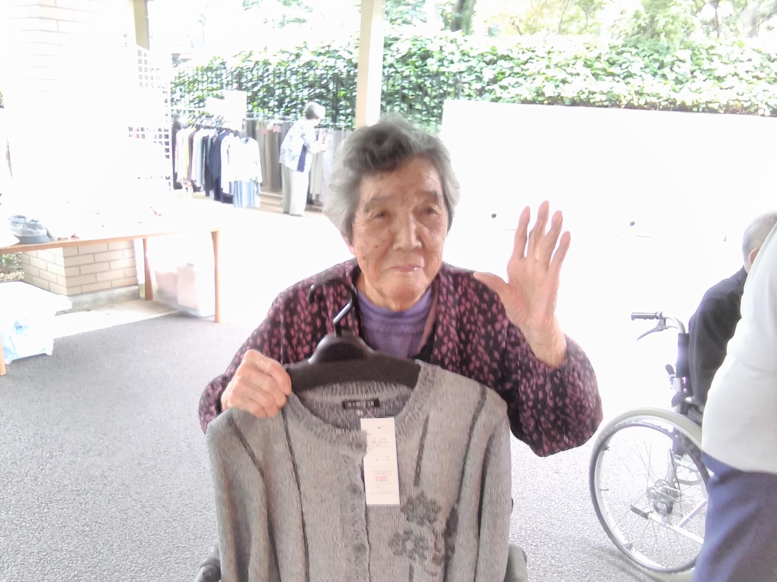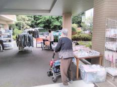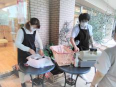 出張販売の「ふくまる」さん、種類豊富な衣類、お菓子や肌着、雑貨などが並びました。