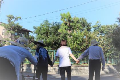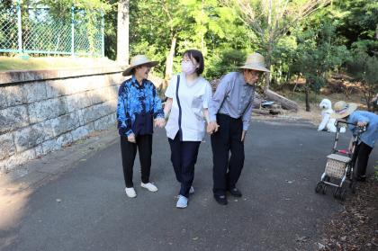 豊かな緑に囲まれたツクイ・サンシャイン川崎宮前、安全に安心してお散歩を楽しんでいます。