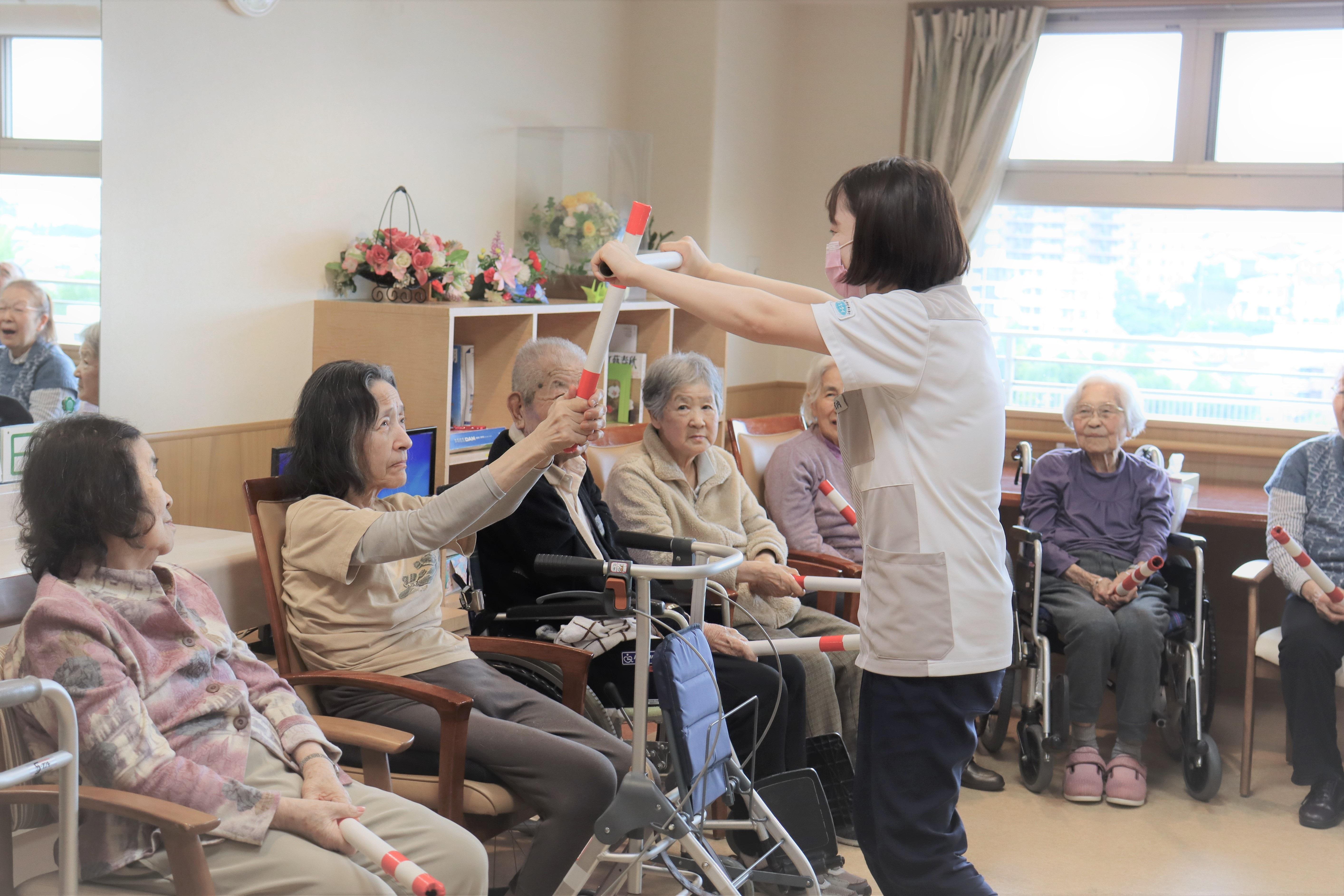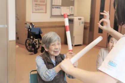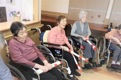 「思いっきり棒を叩いてください!」と機能訓練士が声をかけますが、皆様優しくて・・・そっと棒を叩きます。