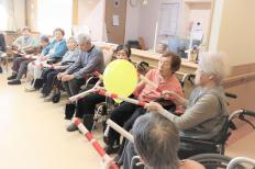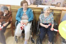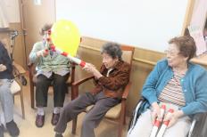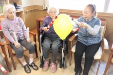 風船バレーやみんなの体操は、大勢で楽しんで開催しています。