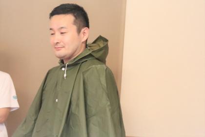 防水カッパを着込んでの登場に、会場は謎の笑いに包まれました。