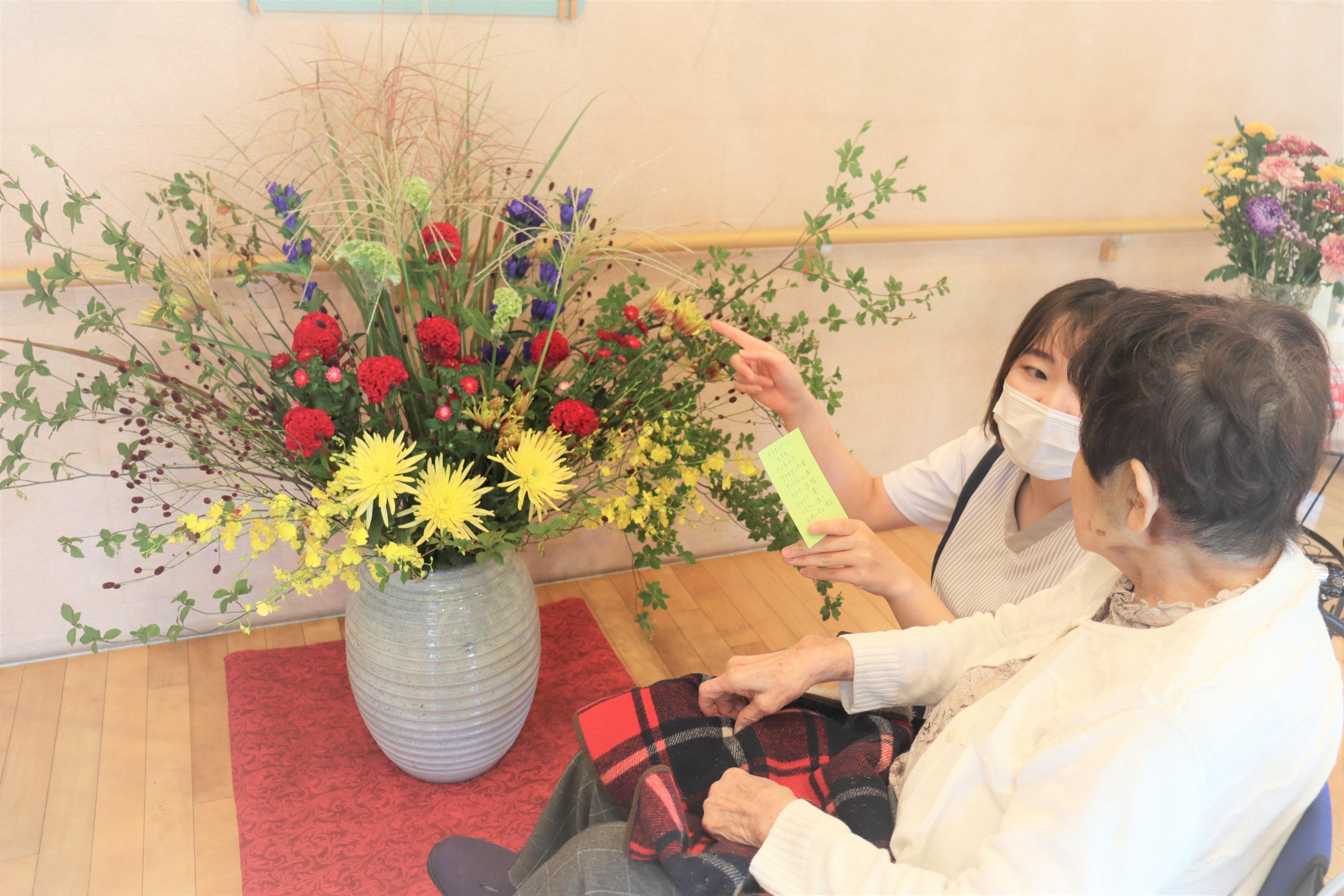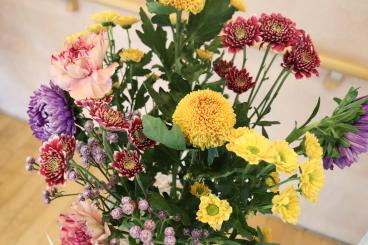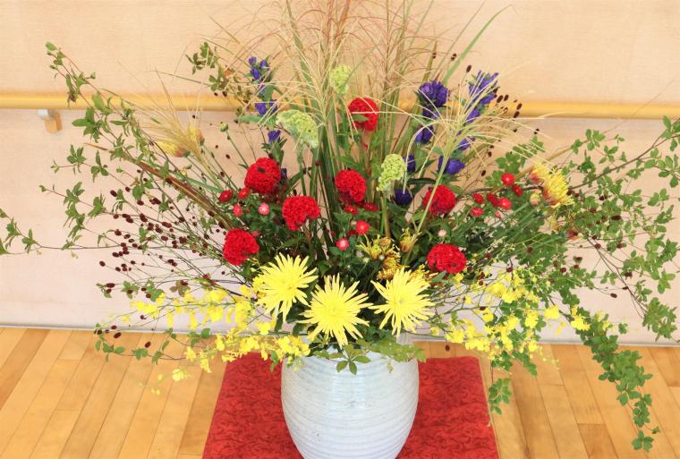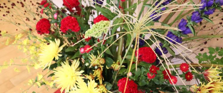 ススキ・ワレモコウ・スプレーマム・リンドウなど、秋のお花がたくさん。