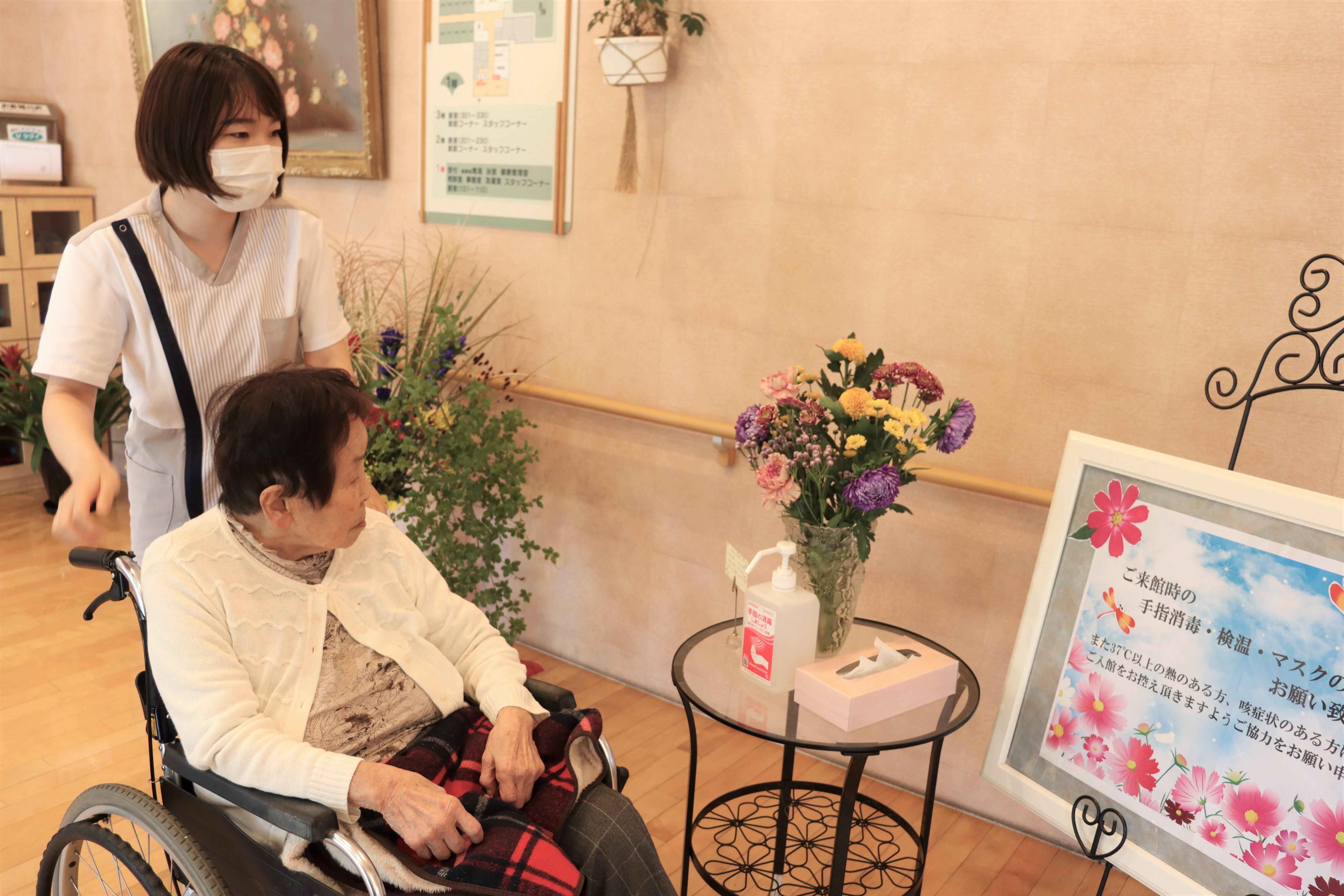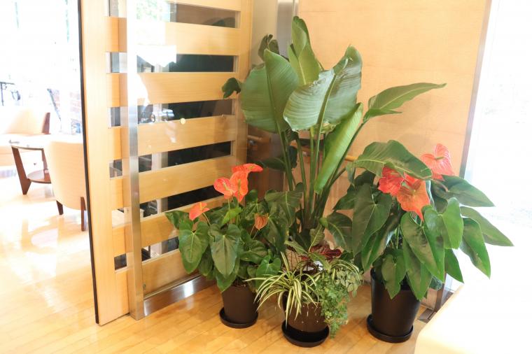 夏の間、玄関の中央に飾っていた観葉植物は自動ドア脇に移動しました。