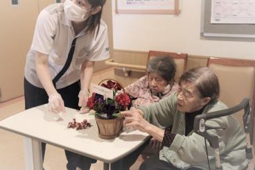 傷んだお花を抜いたり、枯れた葉を取り除いたり・・・