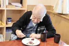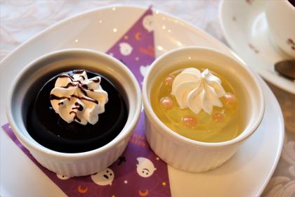 ソフト食のお客様には、葡萄ゼリーとオレンジゼリー。