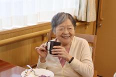 ケーキと温かいお飲み物を召し上がって頂いてます。