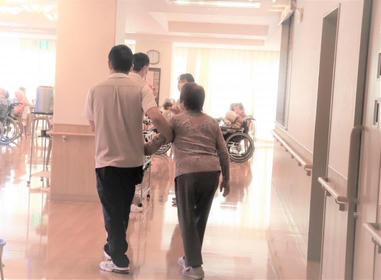 一階の食堂まで、介護職員がサポートしてご案内してます。