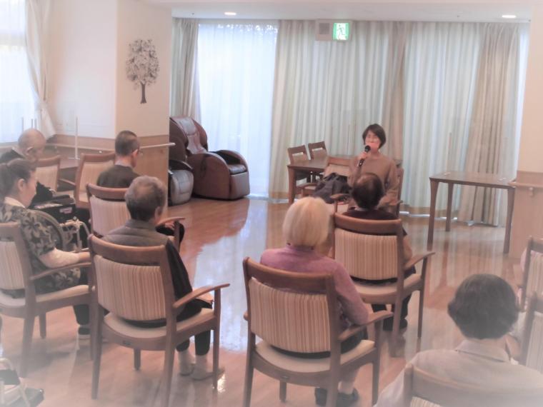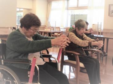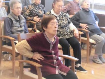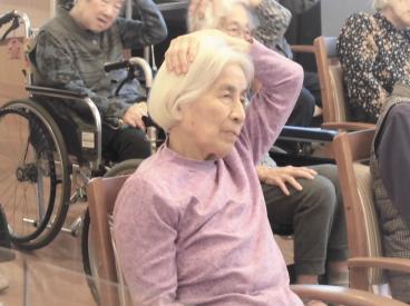 まずは呼吸を整えて・・・先生の掛け声に合わせて身体を伸ばします。