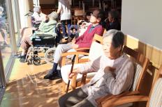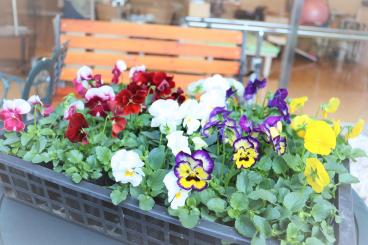 毎年、お花植えにご招待いただいてましたが、感染症を心配してくださり、施設はテラスでの参加になりました。