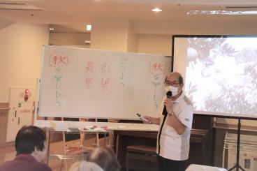 「秋を楽しむ!」と銘打って、秋のお話会&童謡、そしてお抹茶と和菓子を召し上がっていただきました。