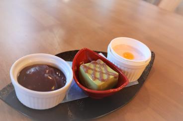 お抹茶と一緒に召し上がって頂く甘いデザート、厨房よりご提供しました。