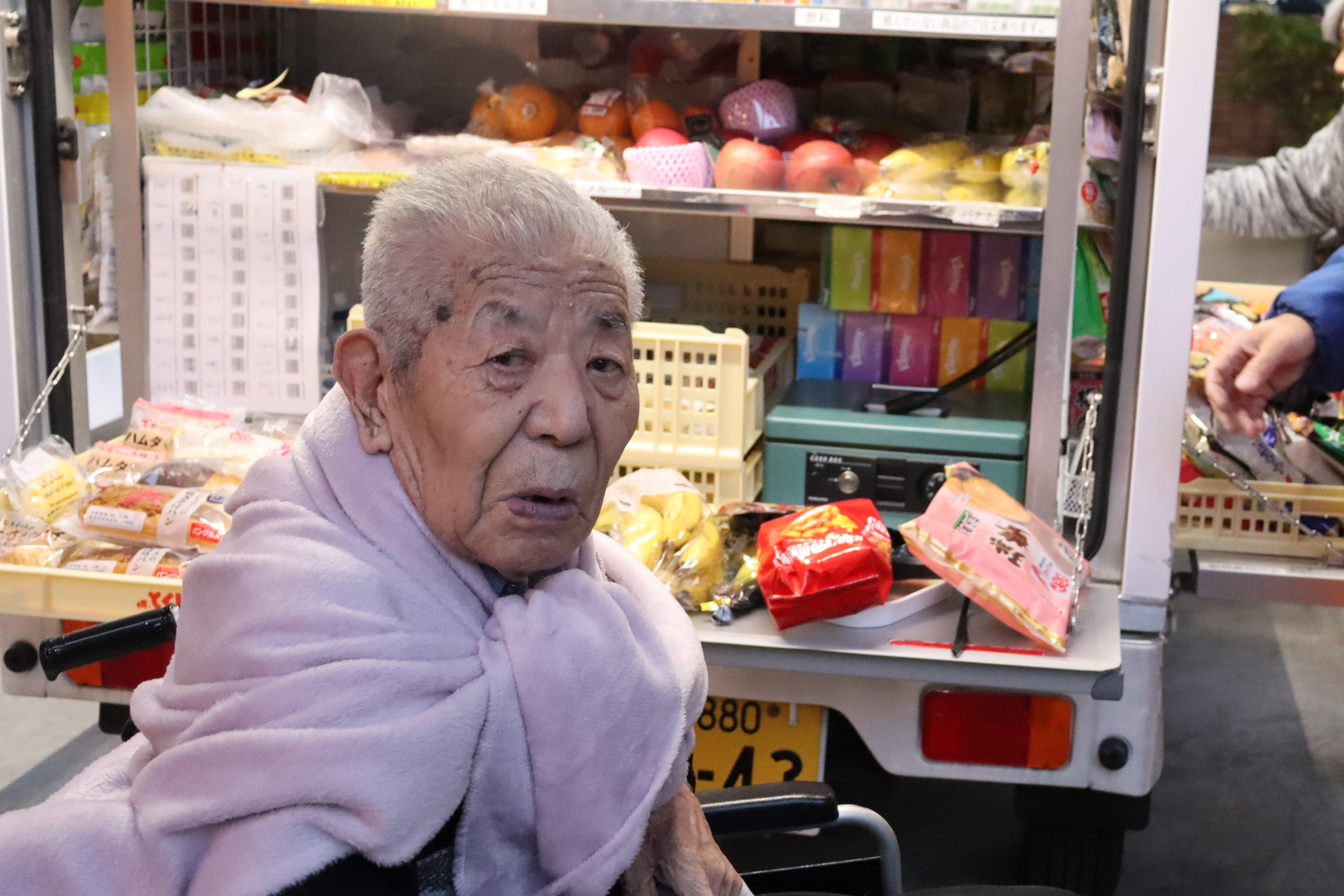 移動販売のとくし丸、毎週二回施設にやってきます。販売員の方には距離を取って頂いて、お客様にお買い物を楽しんで頂いてます。品物を手に取って選んで購入する、とても楽しみな時間です。旬のフルーツやお煎餅が人気です。
