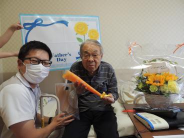 どうしても母の日の陰になってしまいがちで、「父の日おめでとうございます」とお話しすると「父の日も祝ってくれるなんて思わなかったよ!」とびっくりされている、ツクイ・サンシャイン古河あかやまのお父様方です!