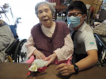それと、当施設には100歳超えのお客様がお二人もいらっしゃるので、特別プレゼントをご用意させていただきます!おめでたいですね!