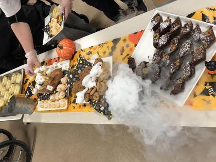 いつものデザートやお菓子もハロウィンの装いでとても賑やか。