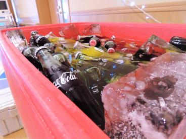 ビンのコーラにオレンジジュース、キンキンに冷やして皆様をお迎えする準備万端ですよ!