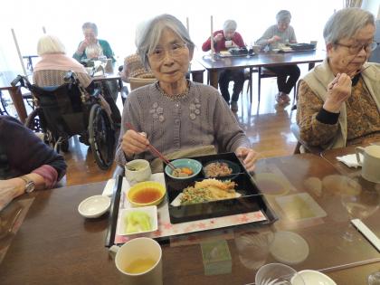 昼食はお赤飯や茶碗蒸し、春の野菜天麩羅をお重で出しちゃいました。