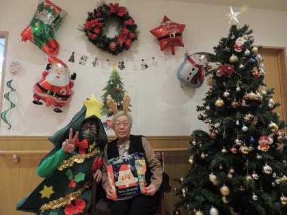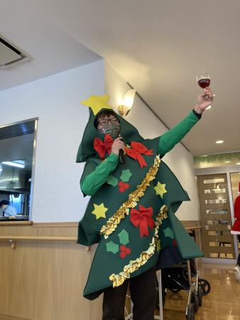 毎年恒例の施設長の仮装ですが…今年は意表をついてクリスマスツリーに変身です!