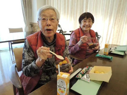 寒天やあんこ、みかん、黄桃、パインなど具沢山で、見た目も華やかでした。