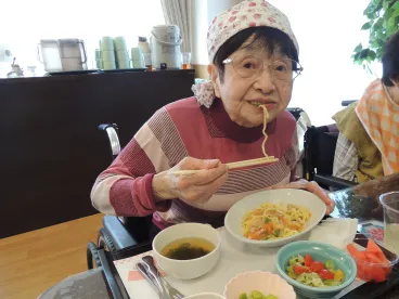 昼食は特別メニューとして あんかけ焼きそば と からあげ をご用意。