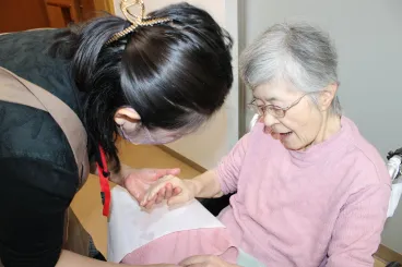 マッサージを受けながら「まるでサロンに来たみたい」「手がすべすべになったよ」と笑顔があふれました。