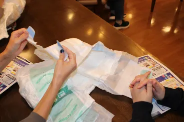 実際の製品を手に取りながら、吸収構造の仕組みやフィット感の調整方法、交換時のポイントなどを丁寧にご説明いただきました。