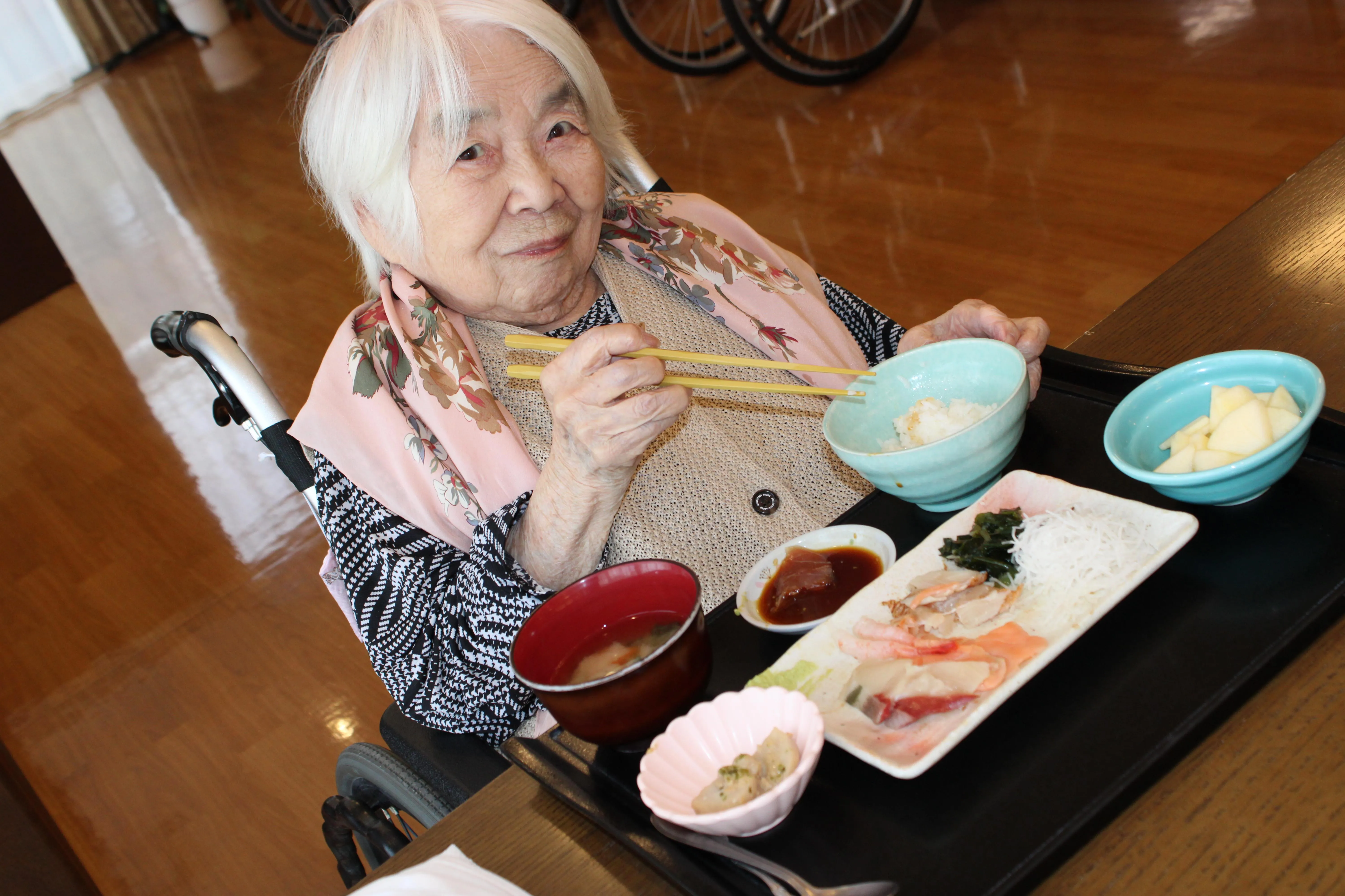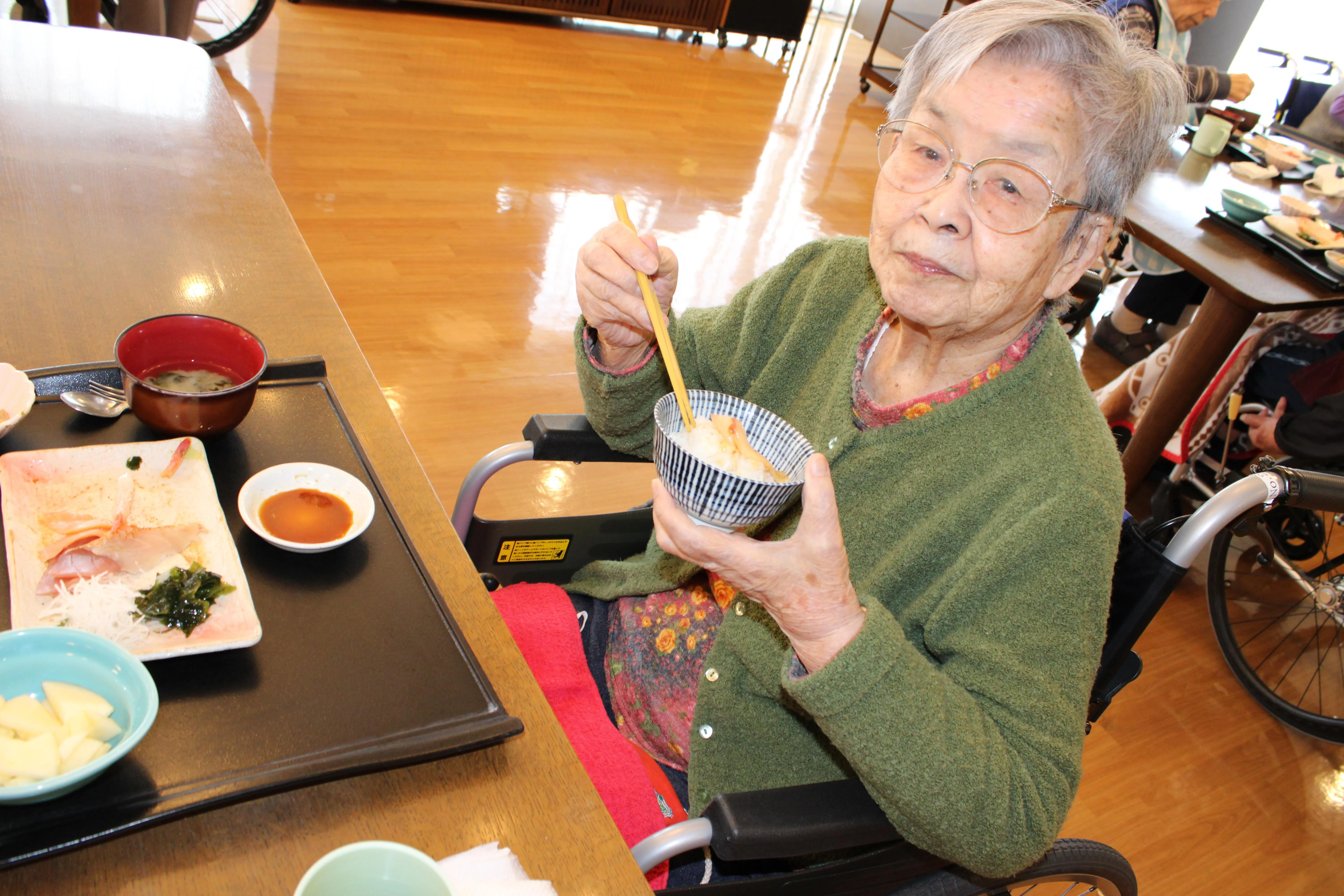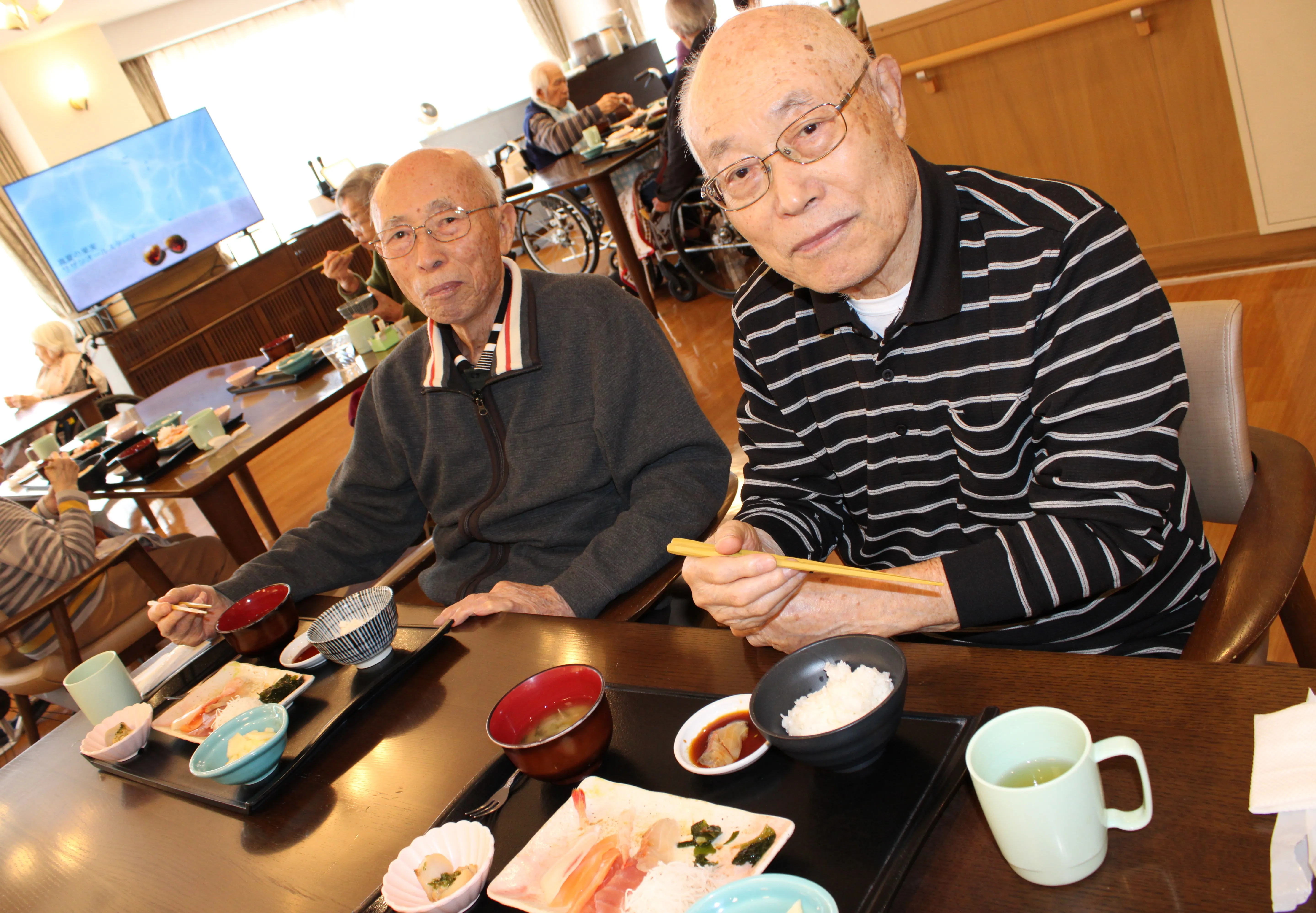 「お刺身はやっぱりうれしいね」「おいしいねえ」と、自然と笑顔が広がり、ゆっくりと味わいながらお食事を楽しまれていました。