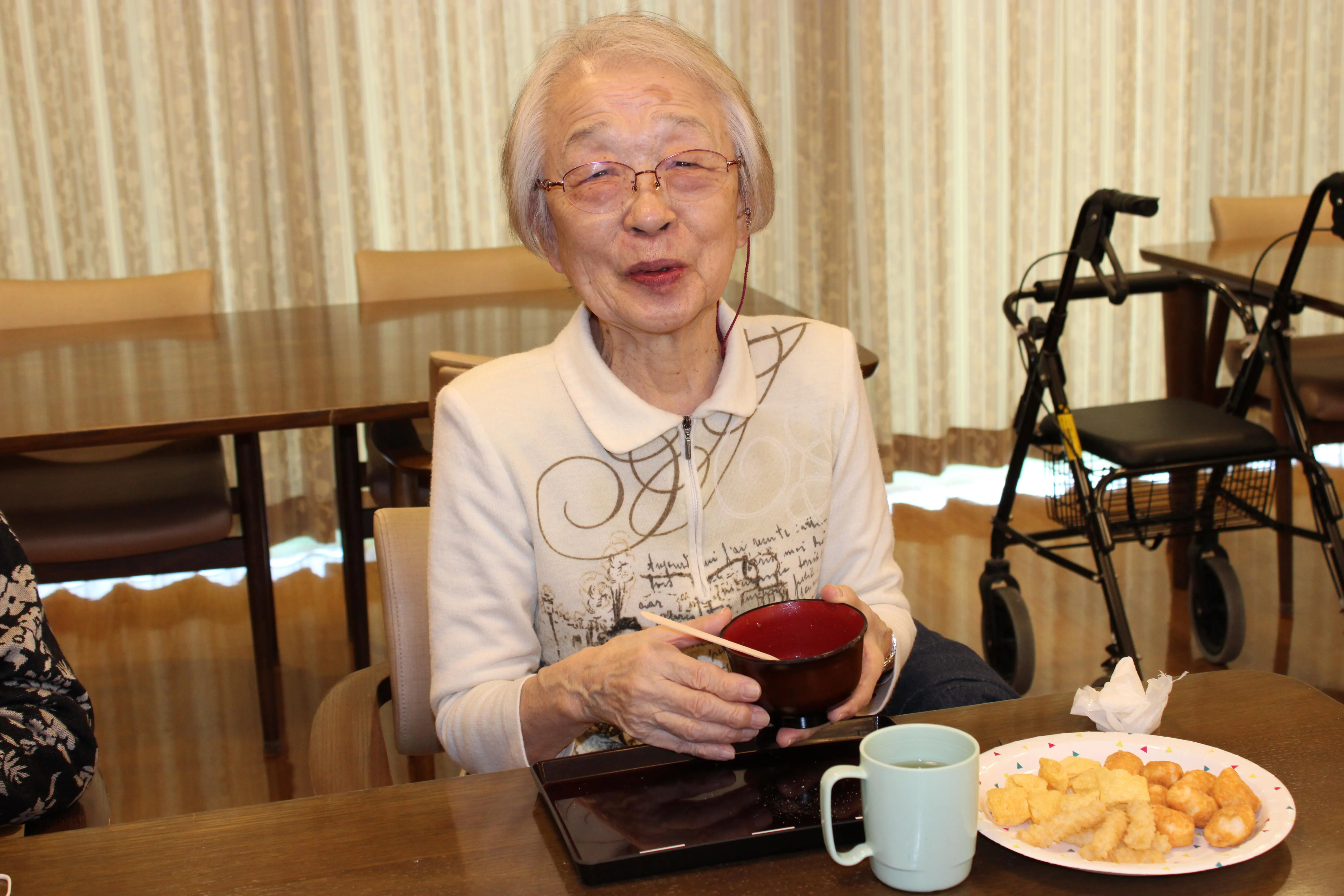 とろりとしたおしるこは体の奥まであたたまり、「あったまるねぇ」「この季節にぴったりだね」と、皆さまにゆっくり味わっていただきました。